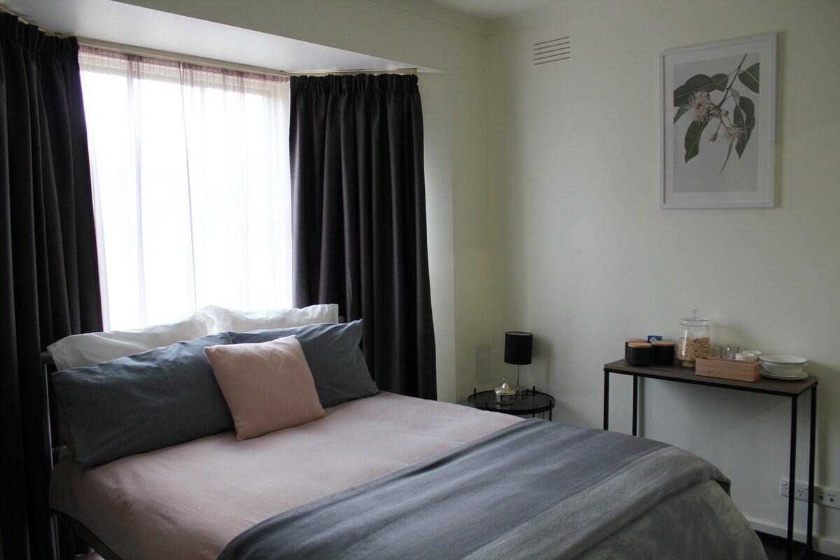 Amplio, luminoso, limpio, tranquilo: unidad autónoma para dos (2) personas. No hay instalaciones compartidas. Cerca de Great Ocean Rd y playas. Estacionamiento gratuito, entrada privada. Dormitorio tranquilo, cama tamaño queen. Baño privado. Amplio balcón con vistas al mar.Sala de estar con sofá, TV, wifi, Netflix, DVD, mesa; cocina americana con nevera, fregadero, microondas, freidora de aire (sin estufa), cafetera. Aire acondicionado de calefacción y refrigeración. Ropa de cama, toallas incluidas. Barbacoa de gas disponible. Sofá cama para un huésped adicional bajo petición ($60 por noche).