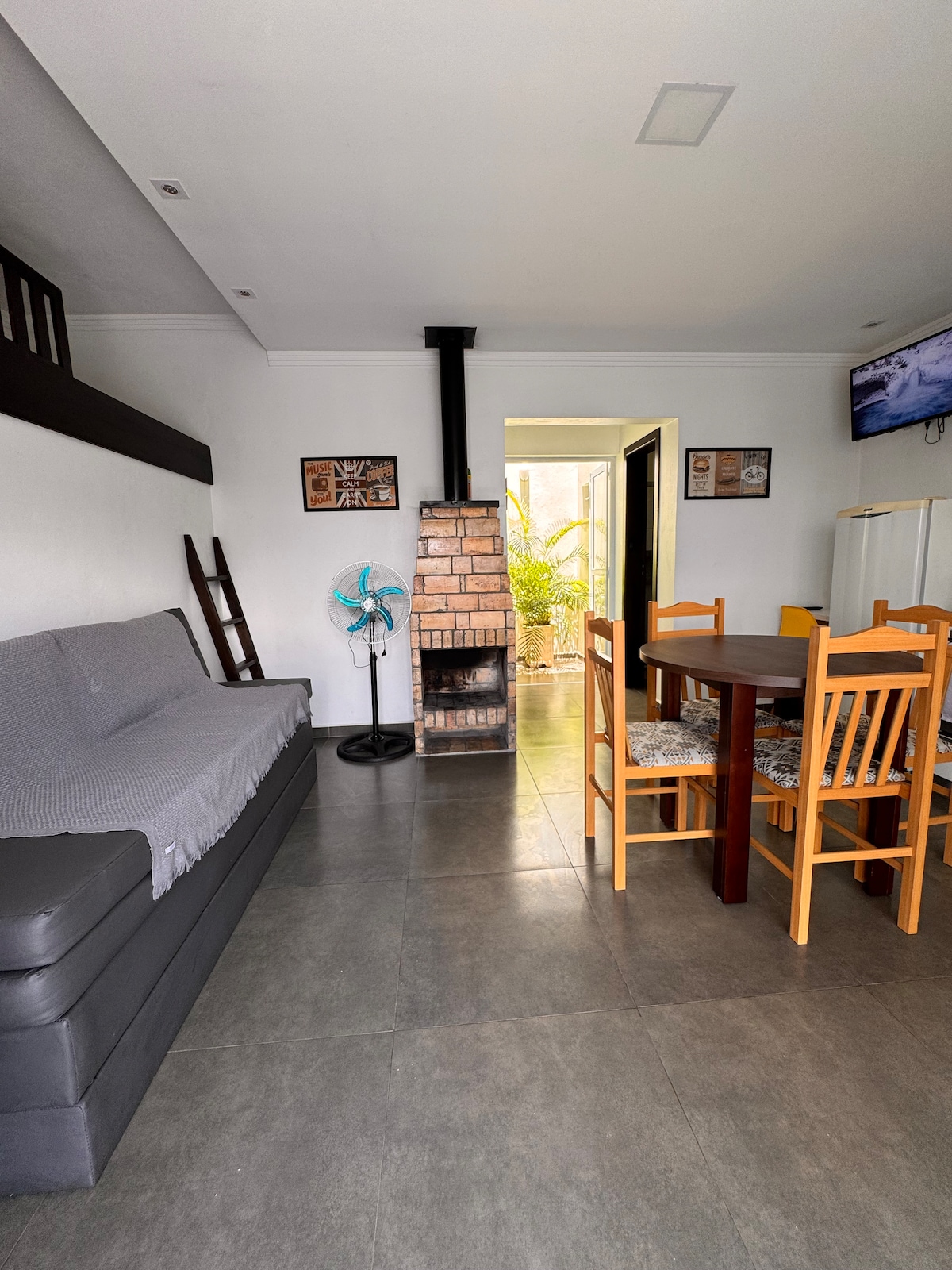 1 dormitorio con aire acondicionado, amplio garaje cubierto y cerrado, lavadora, barbacoa, chimenea, wifi y estación de trabajo. Capacidad máxima 4 personas, ubicado en la Rua Araranguá, en la esquina de Beira Mar, frente a la playa, a 450 metros del río Mampituba que limita con Torres. En el dormitorio hay una cama doble, en la sala de estar una cama alta y un sofá cama que se puede transformar en dos camas individuales u otra cama doble. Tenemos ropa de cama en alquiler o puedes traer la tuya.