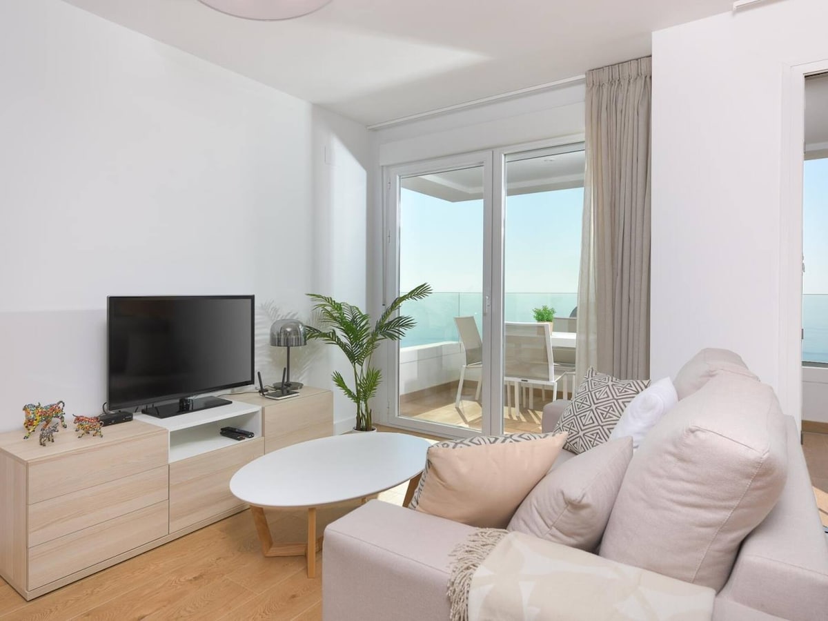 Impresionante apartamento de 2 habitaciones con vistas al mar y piscina comunitaria.