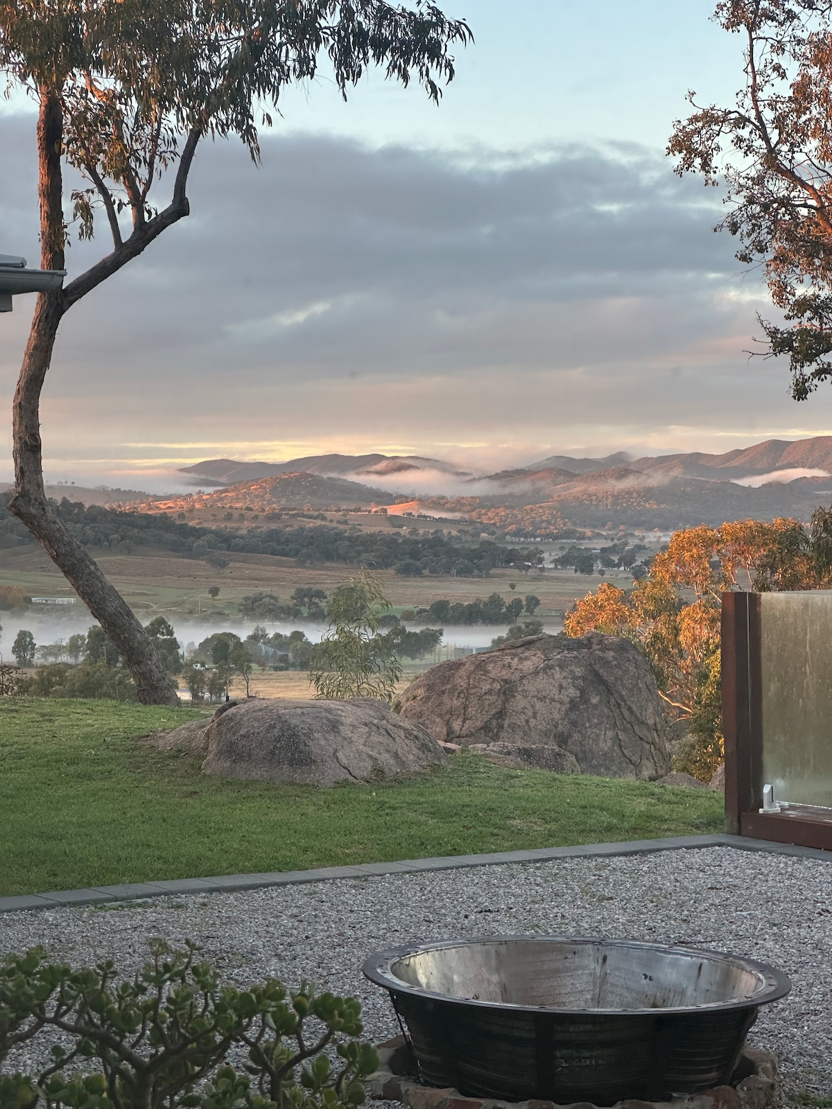 Despiértate con el sol en una acogedora cabaña ecológica rodeada de eucaliptos. Disfruta de tu baño privado al aire libre, café en la terraza y visitas de kookaburras y canguros. Interior: cama queen, Wi-Fi, Netflix, chimenea y aire acondicionado. Exterior: fogata, barbacoa y senderos para caminar a través de 25 acres de arbustos y rocas. Perfecto para parejas que desean quietud, romance y claridad. A solo 15 minutos de las bodegas, restaurantes y vibrante escena gastronómica de Mudgee.