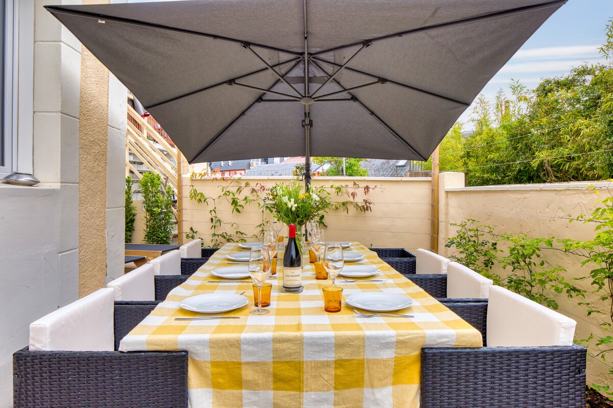 Encantadora casa totalmente equipada con gran terraza y barbacoa a 12 minutos andando de la estación de tren de Deauville y de los muelles de Trouville . ¡Perfecto para 4 adultos y 1 bebé/niño! ¡Estacionamiento gratuito y fácil en la calle! Gran terraza expuesta al sol todo el día con barbacoa, tumbonas y mesa para 8 personas. Casa reformada recientemente y totalmente equipada: lavavajillas, lavadora, secadora, secador de pelo, wifi, cafetera, hervidor de agua, tostadora, etc.