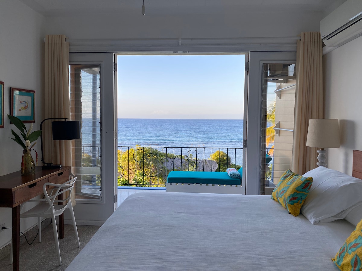 Estamos en pleno funcionamiento después del huracán Melissa con electricidad, agua y wifi. Relájate en este impresionante estudio con vistas al mar a solo 5 minutos del corazón de Ocho Ríos. El estudio está recién renovado con encimeras de granito en la cocina y el baño, y azulejos de porcelana en todas partes para una sensación lujosa pero hogareña. Disfruta de la vasta vista al mar y sumerge los pies en el agua a solo unos pasos del patio. Este estudio es el lugar perfecto para relajarse, escuchar el océano y disfrutar de la brisa.