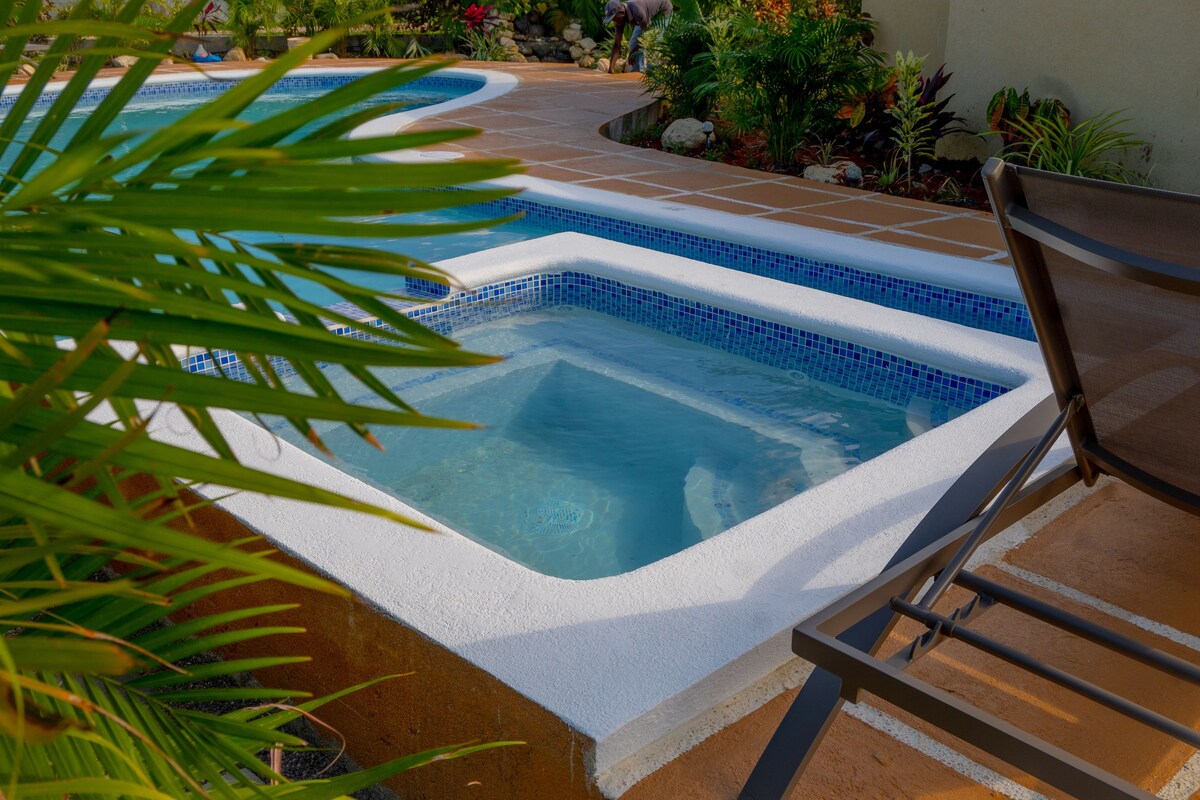 Impresionante bañera de hidromasaje con vistas al mar, piscina y acceso a la azotea