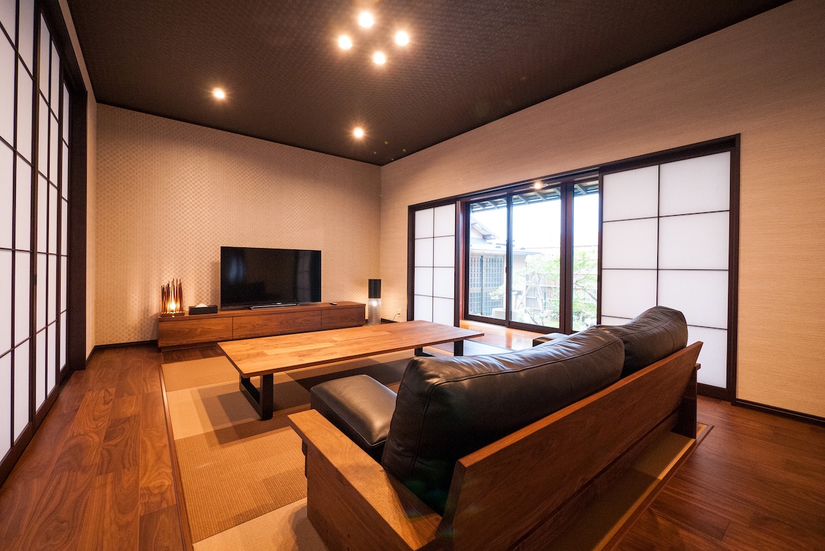 "Kimachi-tei" se limita a un grupo al día. Este es un alojamiento de lujo en un edificio entero donde podrás sentir el "día en Toyama" que no puedes degustar en hoteles, ryokans, etc. Puedes utilizar una casa espaciosa como tu propia casa, y puedes alojarte con un grupo grande. Hemos incorporado las últimas instalaciones para una estancia cómoda, como agua en el baño, inodoro y aire acondicionado, y wifi.También contamos con nevera, utensilios de cocina y vajilla en la cocina, para que puedas comprar ingredientes frescos en Toyama y disfrutar de tus comidas. Disfruta de un momento de lujo con familiares, familiares, amigos y clubes de chicas. "Kimachi Tei" se encuentra en el centro de la ciudad de Toyama, a 10 minutos a pie de la estación de Toyama y a 3 minutos a pie de Sakuragicho, la zona céntrica más grande de la ciudad de Toyama.El barrio es un barrio residencial tranquilo, pero hay muchos restaurantes y bares a poca distancia a pie para disfrutar de las deliciosas comidas de Toyama. Además, el río Matsukawa, famoso por sus cerezos en flor, corre justo al lado del "Kimachi Tei", y puedes disfrutar de hermosos cerezos en flor en plena floración en primavera.