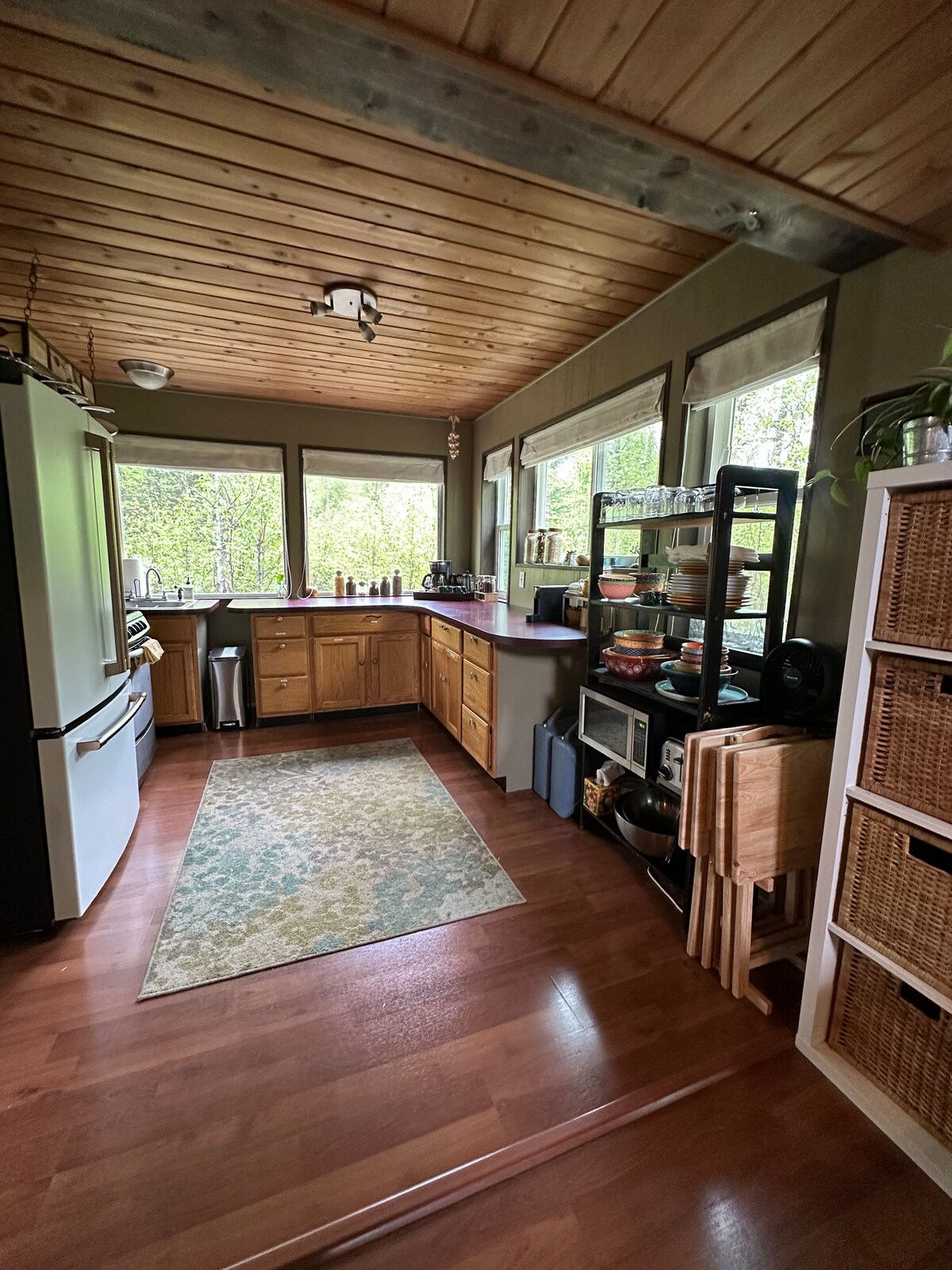 Ubicada en los árboles de un vecindario tranquilo, esta espaciosa casa está a solo 3 millas de la ciudad y a menos de una milla del camino comunitario que conduce a las majestuosas vistas del monte ¡Denali! Este cálido alojamiento es convenientemente accesible a todo lo que Talkeetna tiene para ofrecer. Esta casa de 3 dormitorios/2,5 baños es perfecta para familias/grupos pequeños o grandes. Acurrúcate hasta la chimenea después de un día completo de turismo, disfruta de la naturaleza circundante en el porche cubierto envolvente o cocina la cena junto con familiares y amigos.
