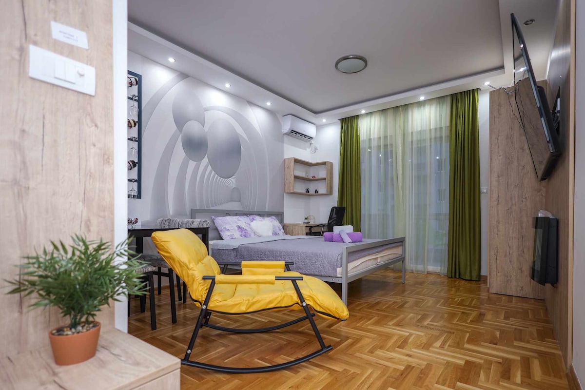 ¡Este nuevo y encantador estudio está listo para sus primeros inquilinos! Totalmente equipado para tu comodidad tecnológica, el alojamiento te permitirá trabajar desde el extranjero o simplemente mantenerte conectado mientras disfrutas de las vistas a la montaña y a la calle de esta ciudad en auge (y comida, por supuesto). El alojamiento cuenta con una práctica bicicleta urbana que te permite llegar a cualquier punto de la ciudad en 20 minutos. El sofá se despliega para hacer una cama. Si vuelas a Dubrovnik, te ofrecemos traslados desde el aeropuerto hasta Trebinje. ¡Esperamos verte pronto!