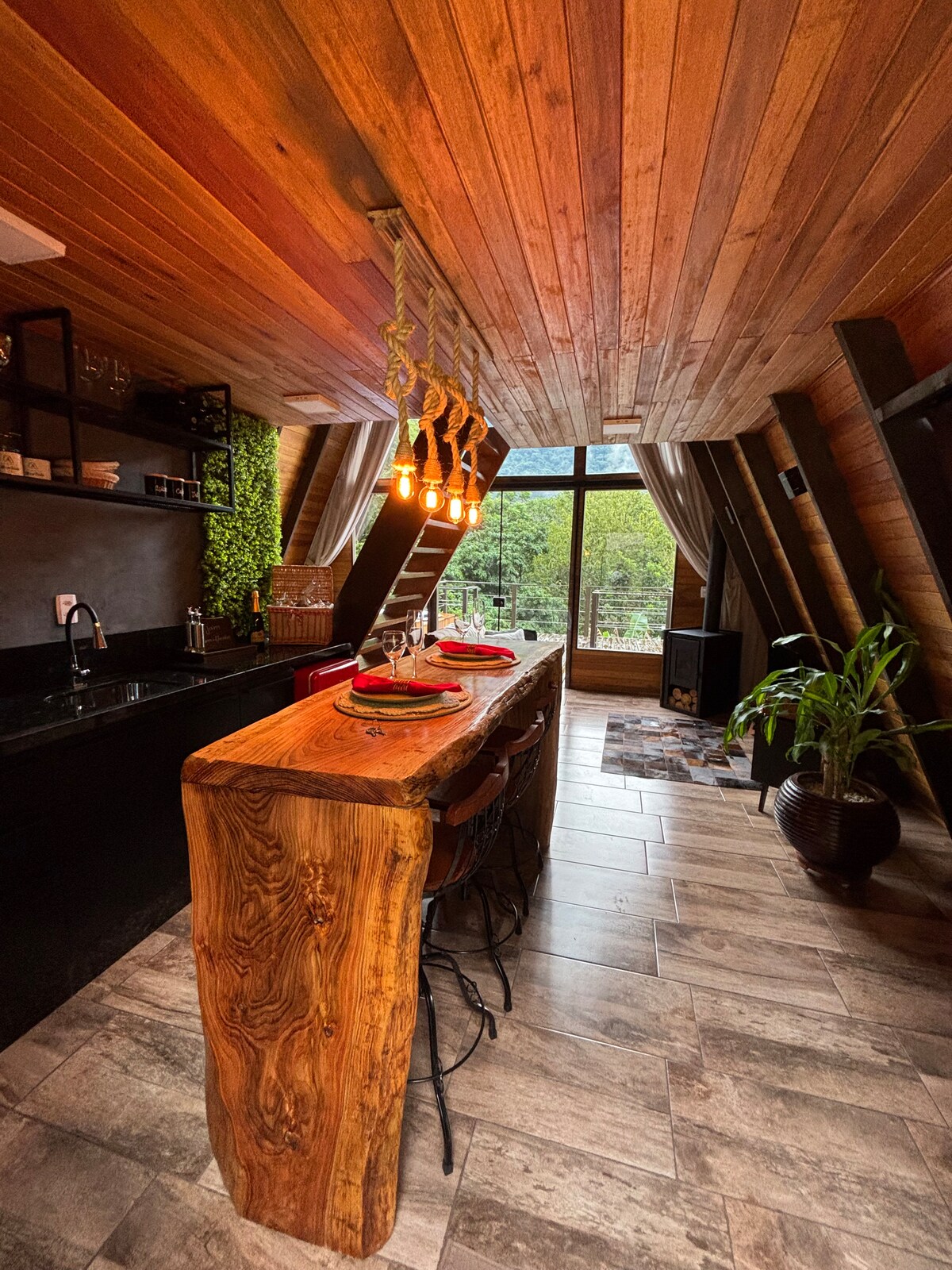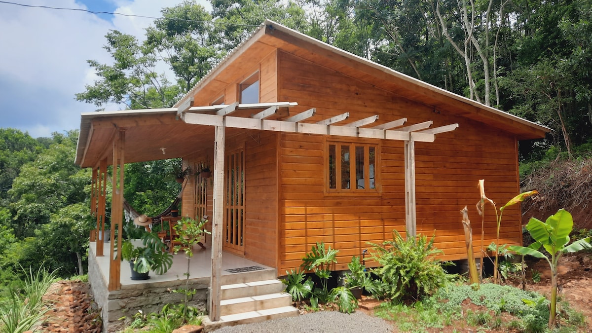 Surrounded by the Atlantic Forest, Casa Iandé is a haven of tranquility and comfort set on a 3-hectare property, just 10 min from Três Coroas and 22 km from Gramado. Built with fine wood, it offers one bedroom, a mezzanine, a kitchen with living area, a panoramic deck overlooking the valley, a spa with hot tub, and an outdoor fire pit. With no TV, time flows differently here: read, listen to music, watch the sky, and connect with nature in an atmosphere of peace and harmony.