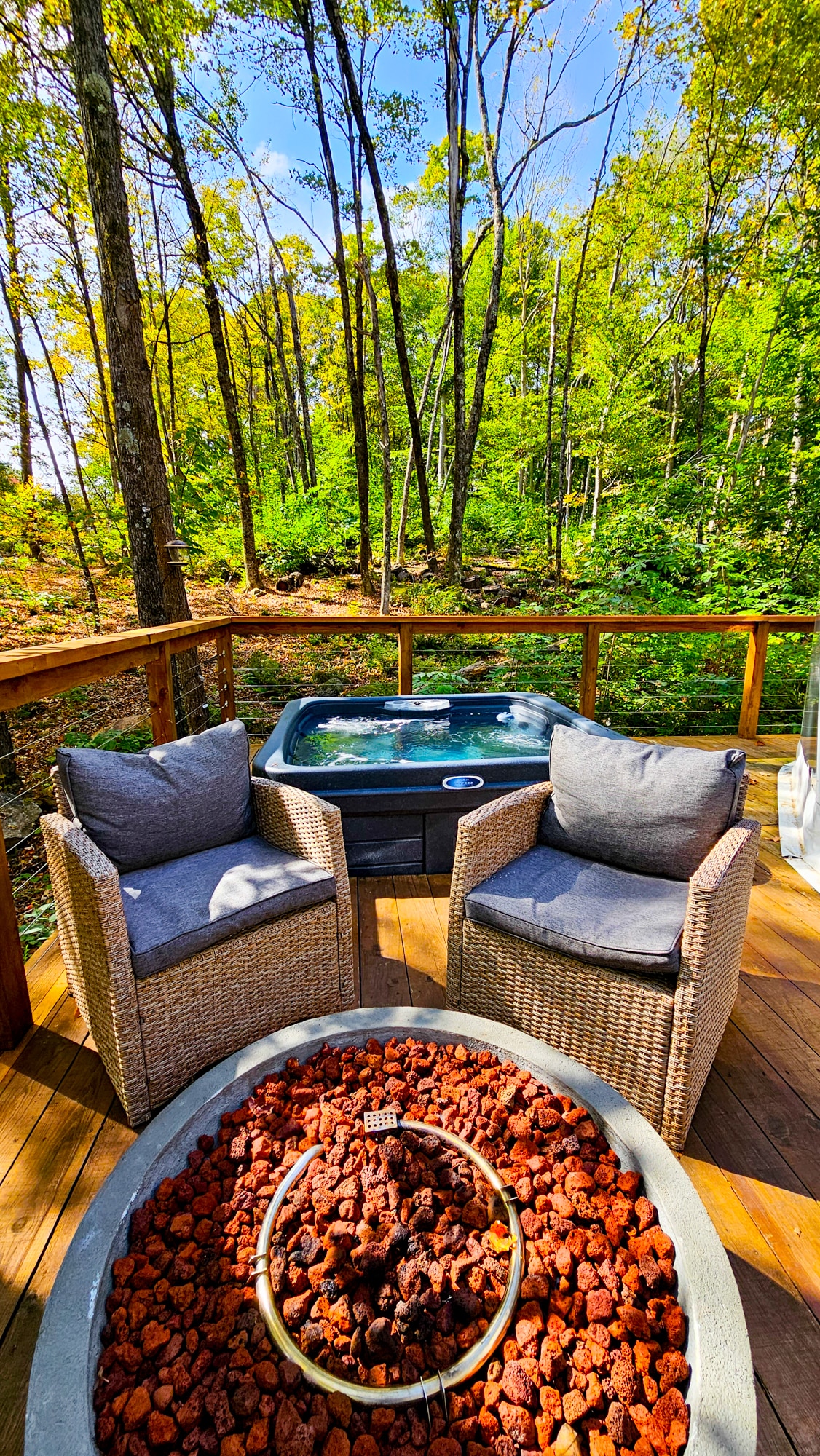 Chalé en plena naturaleza con vistas a la montaña. Spa exterior cubierto abierto todo el año, chimeneas de leña interior y exterior, calefacción por suelo radiante y barbacoa. Cocina completa con café incluido. Tres habitaciones: suite principal con cama king y chimenea de gas, segunda habitación con cama queen y altillo con cama queen. Terreno de 5 acres con 2ª fase de alquiler prevista para 2026. Perfecto para reponer energías. N.° enr. 309551 exp. 2026-06-08.