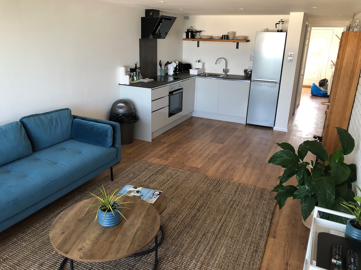Hasta dos adultos (mayores de 18años) solo se adaptan a las parejas. Un apartamento independiente con vistas al mar, está perfectamente ubicado en Porth, cerca de la playa, que está a pocos pasos. El Mermaid Inn (pub en la playa en sí) sirve comida y una cafetería que sirve helados, etc. La ciudad de Newquay está a poca distancia. Hay una entrada separada y estacionamiento fuera de la carretera para un solo auto. Smart TV de 50pulgadas en la sala de estar y un televisor inteligente de 43 pulgadas en el dormitorio. Cama tamaño king. Cocina totalmente equipada. Lo siento, no se admiten mascotas.