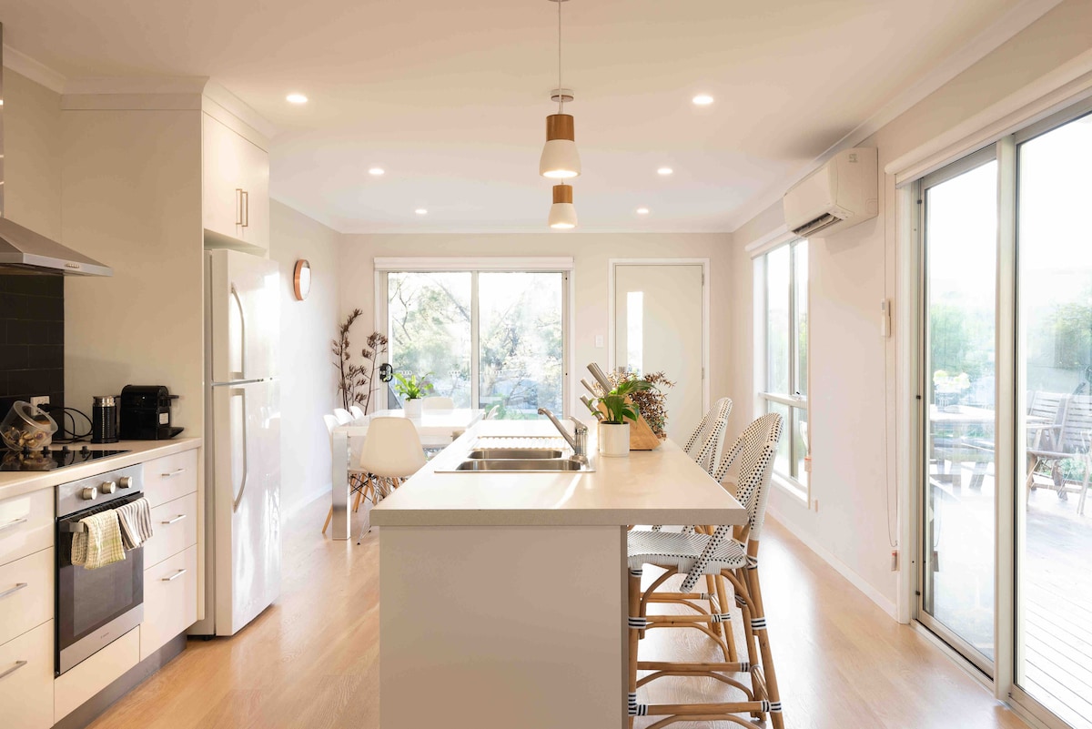 Una vez conocida como Millingtons House, Sunways es una casa de 1925 llena de luz a solo unos pasos del río y a un corto paseo de la playa del océano. Con dos amplios dormitorios tamaño queen, un baño fresco con productos botánicos de Salus y un solárium hecho para tardes de descanso, es un lugar para relajarse. A tu llegada, disfruta del vino rosado espumoso Bellebonne y los chocolates Kenyak antes de relajarte con el ritmo del aire marino y el encanto del viejo mundo. Alojamiento apto para mascotas: se admiten un máximo de 2 perros.