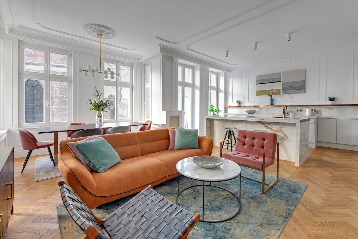 Este es un apartamento único (2 habitaciones) situado en el centro del casco antiguo, en la calle más prestigiosa de Gdańsk: la calle Długa. También llamada la Ruta Real. Desde las ventanas se puede ver la Calle Larga, la Fuente de Neptuno, la Plaza del Mercado Largo, el Ayuntamiento y la Puerta Dorada. Si quieres algo más que un lugar para dormir, te recomiendo este apartamento. Su diseño interior original, que mezcla elementos antiguos y modernos en un gran espacio, te ayudará a experimentar el encanto inolvidable de Gdańsk.