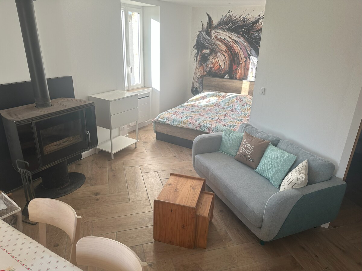 Un acogedorable gîte (43m2) ubicado en el campo a 5 minutos de la ciudad de los caballos de Pompadour. Aquí encontrarás un hermoso castillo, hipódromo, restaurantes, terrazas y tiendas. Hay bonitos pueblos cercanos, con mercados, rutas de senderismo, lago para nadar y piscinas a poca distancia en auto. El gîte tiene un espacio de estacionamiento privado y un jardín cerrado. Se admiten mascotas en consulta. Cobramos un recargo por esto (indicar al reservar). No se permiten fiestas/fumar en interiores ni vapear.