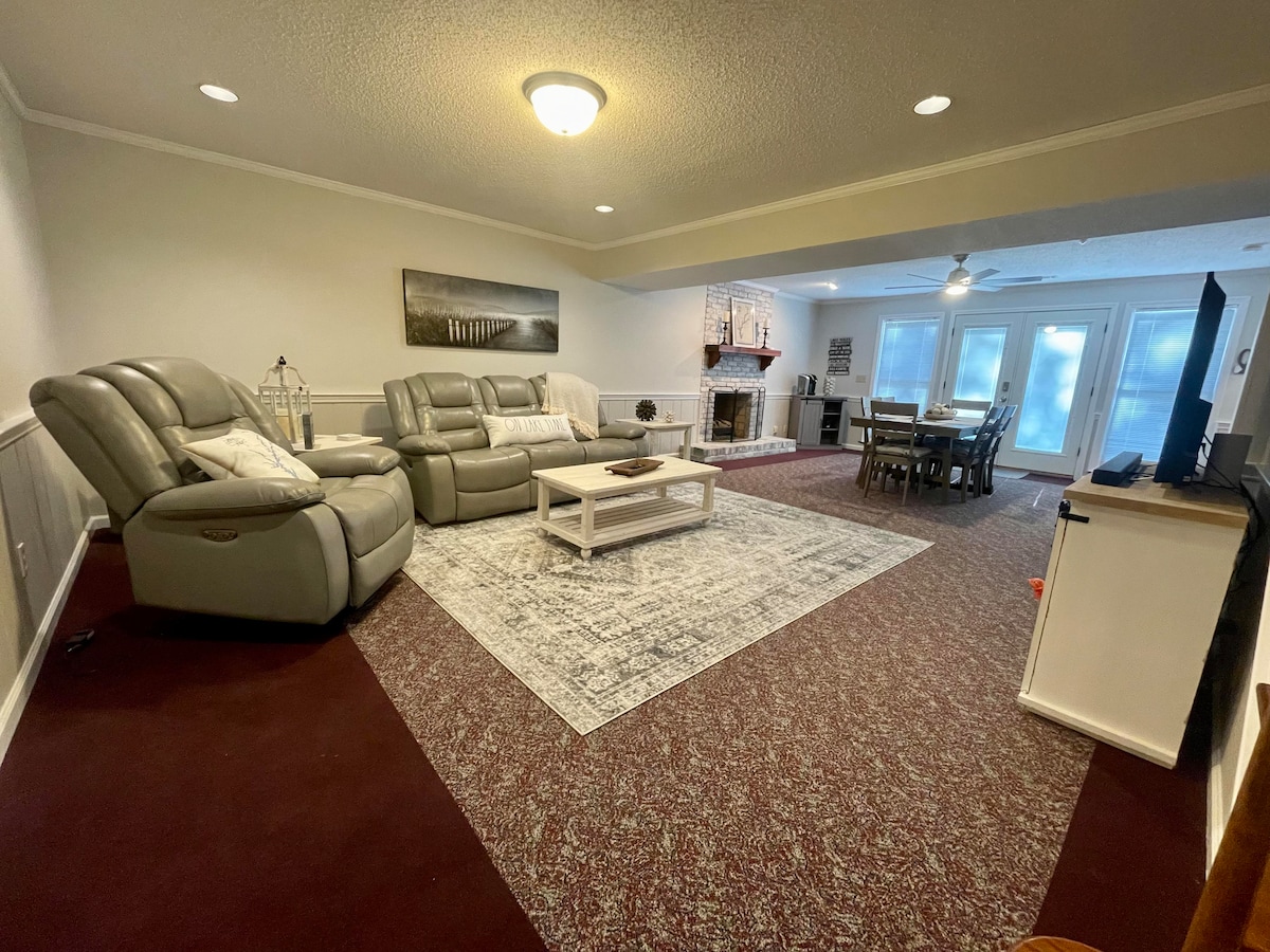 ¡Bienvenido a nuestro sereno refugio, perfectamente situado en una tranquila cala a pocos pasos de las orillas del lago West Point! La planta abierta fomenta el tiempo de calidad con los seres queridos, mientras que los espacios al aire libre, como una acogedora chimenea y una amplia terraza, proporcionan el entorno perfecto para la relajación. En el interior, disfruta de una sala de juegos diseñada para la diversión y el entretenimiento. Nuestro espacioso refugio tiene capacidad para 10 personas con 4 dormitorios, 3 baños completos y 1 aseo, además de una lavadora y secadora de tamaño completo.
