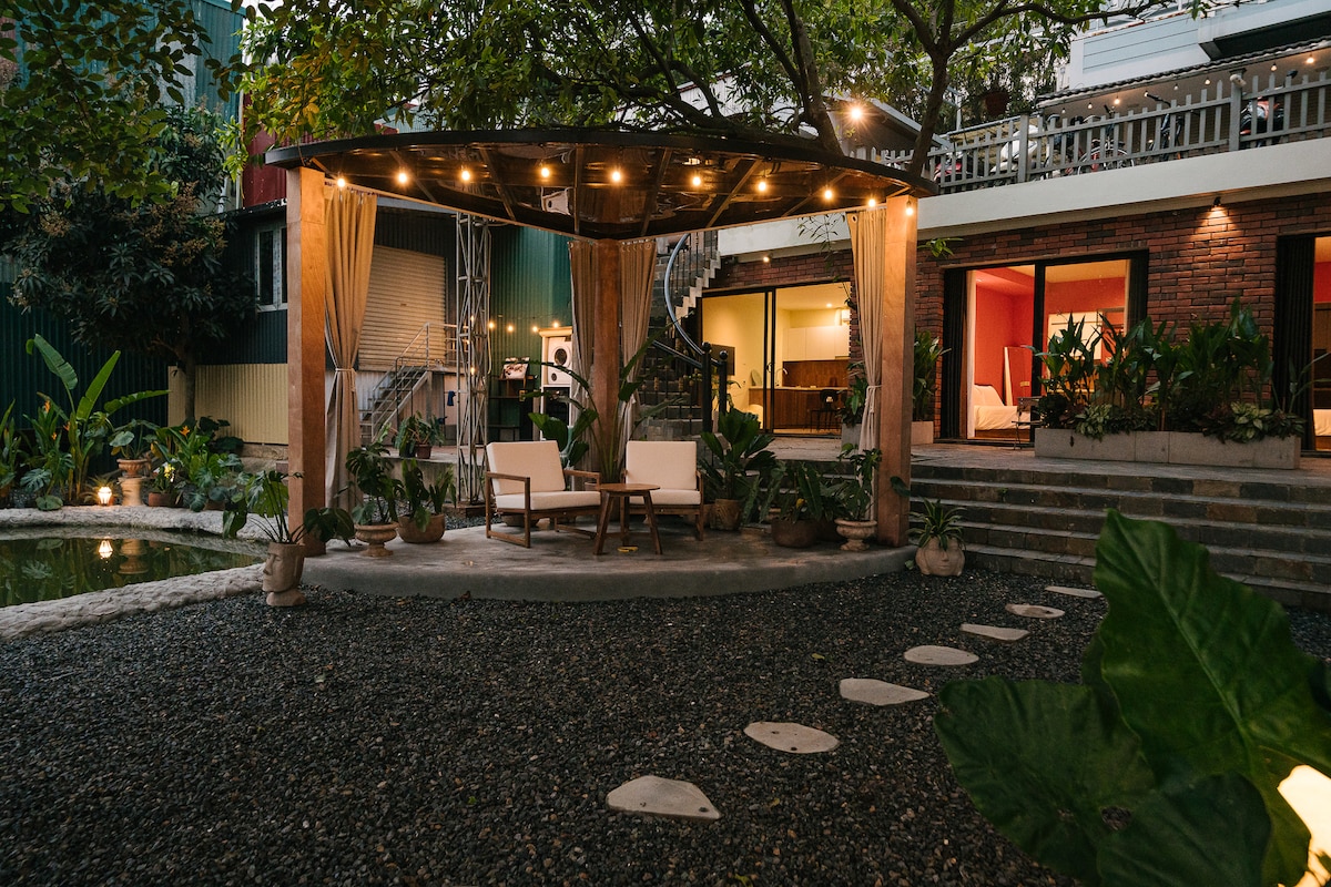 Welcome to Riva Lenta Retreat, a quiet sanctuary nestled along the timeless flow of the Red River. Just moments from the city, yet worlds away in atmosphere, this retreat invites you into a space where nature, warmth, and stillness come together. Here, the gentle presence of the Sông Hồng becomes part of your stay — a calm backdrop to mornings, sunsets, and slow evenings under soft lights.