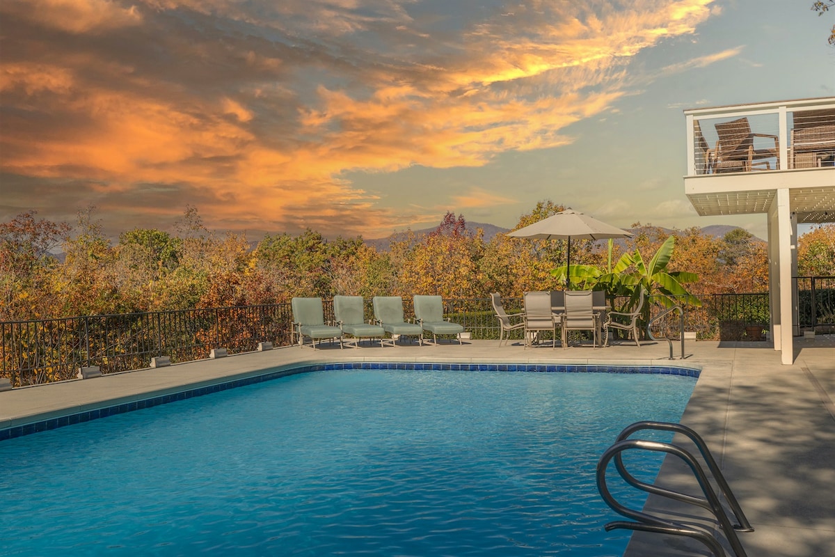 ¡Te damos la bienvenida a Butter Street Retreat! Una escapada privada en la copa de un árbol con vistas panorámicas ubicada en las estribaciones de las montañas Blue Ridge en siete acres aislados. PERFECTO PARA UNA ESCAPADA ACOGEDORA Y ROMÁNTICA O UNAS VACACIONES EN FAMILIA. ¡Diseñado para el descanso, la relajación y la reconexión! vistas de las montañas al🌄 atardecer 🌊 jacuzzi estufa de leña🔥 interior + hoguera exterior piscina 🏝privada de agua salada (climatizada según la temporada) cafetería ☕️ surtida sala de🎮 juegos con juegos recreativos, diana, Nintendo, Sega Genesis, TV inteligente