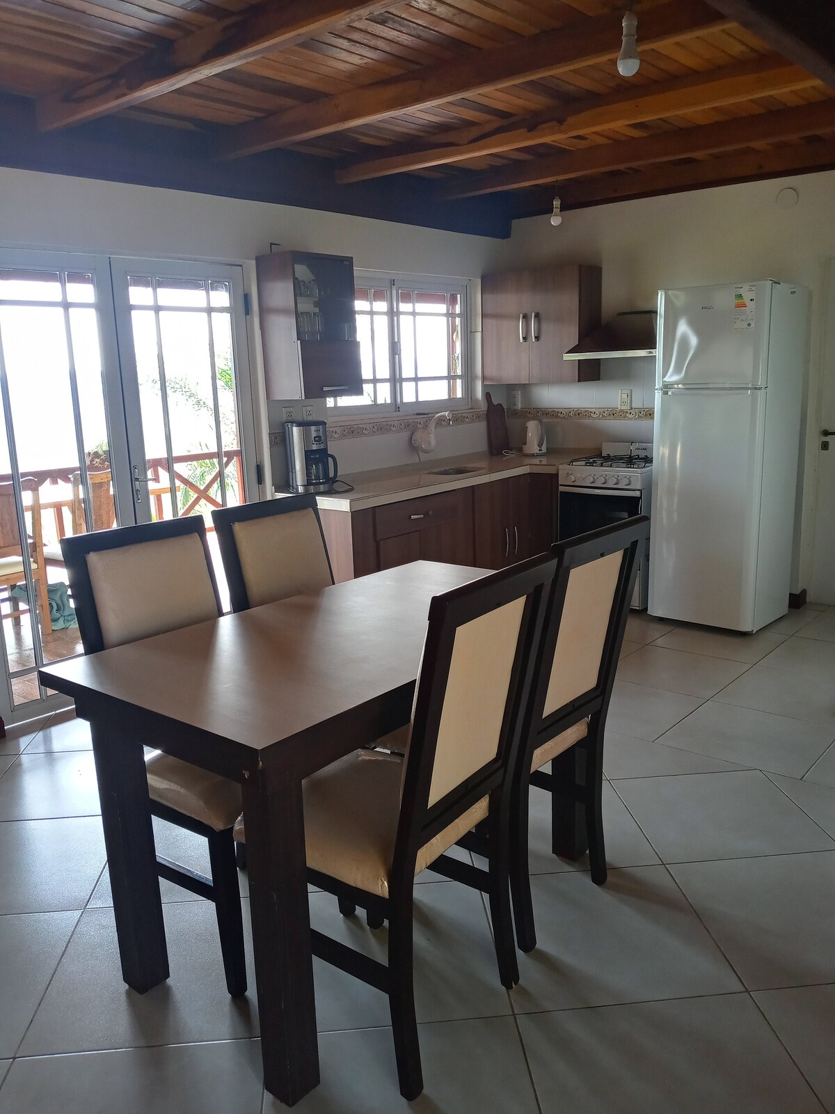 Casa con gran área exterior y vista privilegiada al río Uruguay. El espacio interior es completo y acogedor, con baño, cama doble, sofá cama, cocina equipada, cervecería, chimenea, aire acondicionado, TV inteligente y wifi. Junto a la casa, hay un quiosco completo, con barbacoa, encimera con fregadero, estufa de leña, estufa de gas, refrigerador, microondas y baño, ideal para el ocio y la socialización.