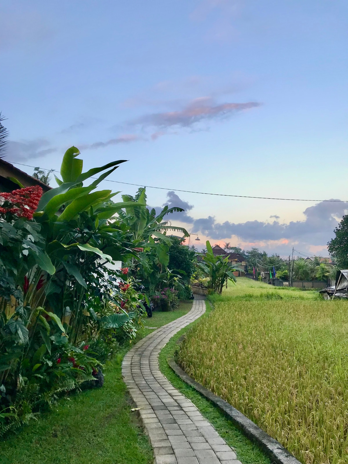 Disfruta de la auténtica vida balinesa en el tranquilo pueblo de Penestanan, a solo 20 minutos a pie del centro de Ubud. Alójate en una espaciosa casa tradicional con dos habitaciones privadas, cada una con una cama tamaño queen y baño privado. Disfruta de un entorno exuberante con una cocina moderna, wifi y un ambiente familiar acogedor. Acompáñanos en las ceremonias del pueblo (si están disponibles), saborea el desayuno casero y explora los arrozales y la naturaleza cercanos.