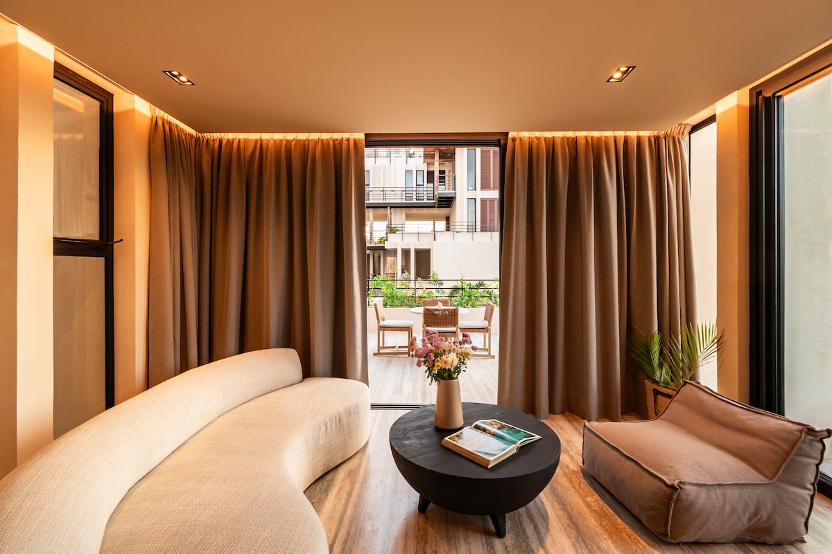 As a member of Small Luxury Hotels of the World, Bespoke, this elegant 2-bedroom apartment offers private access to a sandy beach and a serene luxury escape in Tulum. Enjoy a modern kitchen, spacious living room, two full bathrooms, air-conditioning throughout, and large windows with natural light. Relax with Wi-Fi, TV, and laundry facilities, or step outside to the beach and discover Tulum’s vibrant restaurants, culture, and nightlife just minutes away.