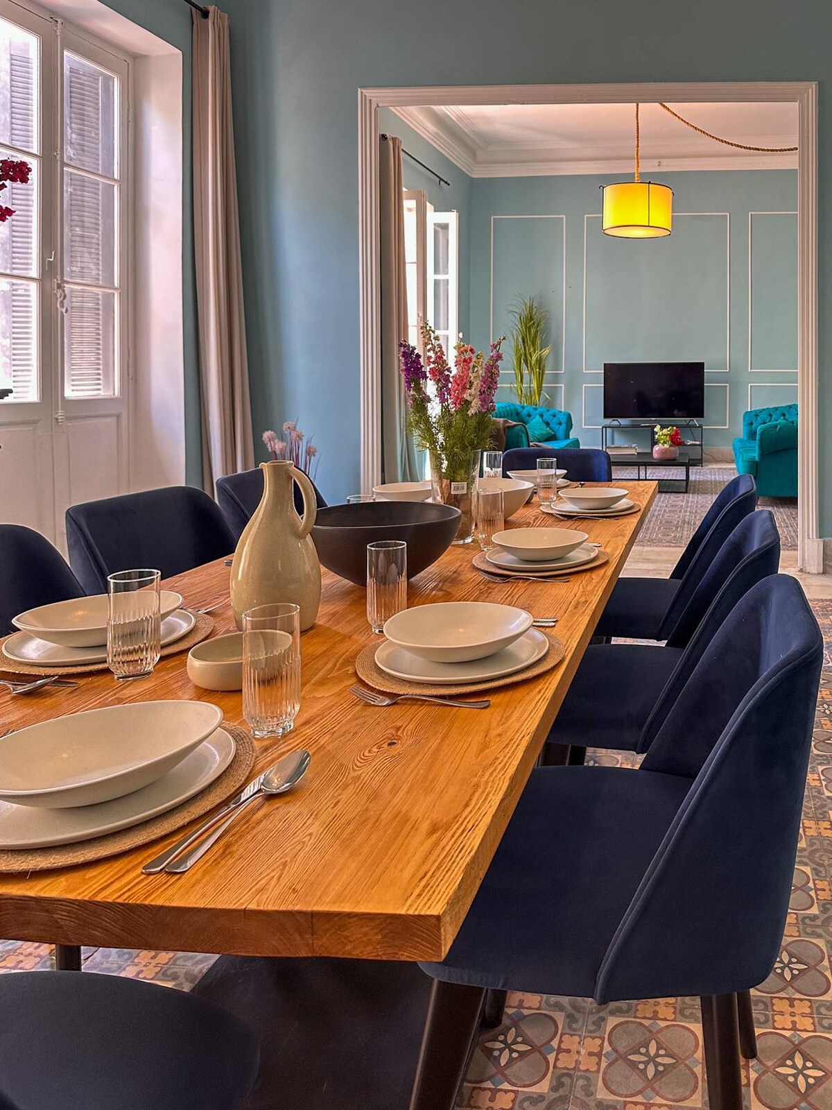 Escápate al encanto atemporal de Sidi Bou Said✨. Esta exquisita casa de huéspedes, enclavada en el corazón de Túnez, es perfecta para estancias inolvidables con tus seres queridos o para eventos íntimos y celebraciones como una fiesta de compromiso o una pequeña ceremonia de boda. Con sus intrincados azulejos, toques vintage y ambiente cálido, es más que una estancia, es una experiencia✨. ¡Tiene 2 dormitorios dobles, una sala de estar y comedor, 4 baños y una azotea con una vista increíble! Ten en cuenta que los eventos tienen un precio diferente.