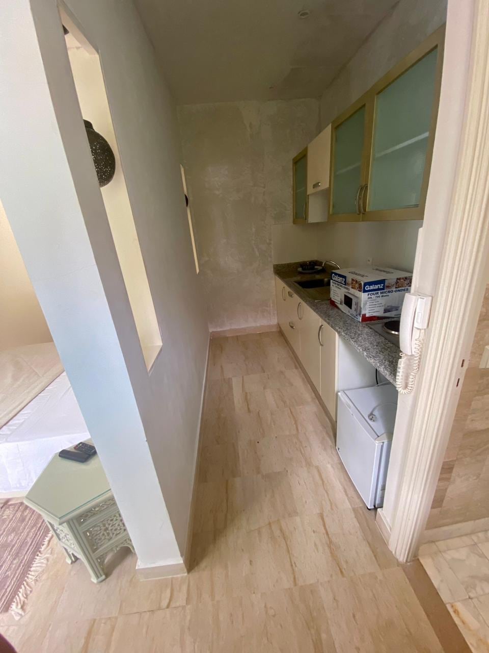 Dar Salha, es un bungalow compuesto por un dormitorio con aire acondicionado, espacioso y luminoso. El alojamiento está equipado con baño privado y una pequeña cocina. El espacio habitable está equipado con un gusto refinado y criado por un toque nostálgico fiel al patrimonio artesanal específico de la ciudad de Mahdia.