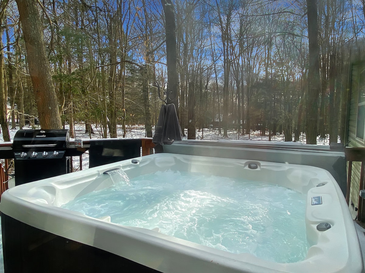 Latitude Adjustment es un refugio único en Pocono Lake, diseñado para aquellos que buscan la combinación perfecta de relajación y exploración local. Equipado con una increíble sauna de vapor al aire libre para 4 personas, una bañera de hidromasaje privada para 7 personas con cascada, altavoces Bluetooth y luces LED, una enorme sala de juegos con TV de 65pulgadas, estufa de leña, gran área de entretenimiento al aire libre con parrilla, chimenea, cobertizo para huéspedes y comedor. Ubicado en una hermosa comunidad de Arrowhead Lake, rica en servicios, a 1 minuto caminando del lago.