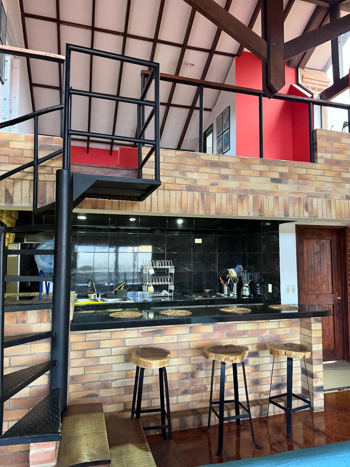 Alma Verde es mucho más que un hospedaje. Es tu casa de campo en un lugar de ensueño; un refugio natural, ubicado en un entorno natural privilegiado, muy cerca del casco urbano de Ráquira. Rodeado de naturaleza exuberante, árboles frutales y flores, que llenan el aire de fragancias y colores; un verdadero oasis de paz. La casa dispone de una habitación grande, cama king y sofá cama, además baño completo, también cuenta con cocina dotada, horno a leña, comedor y sala en un solo ambienté