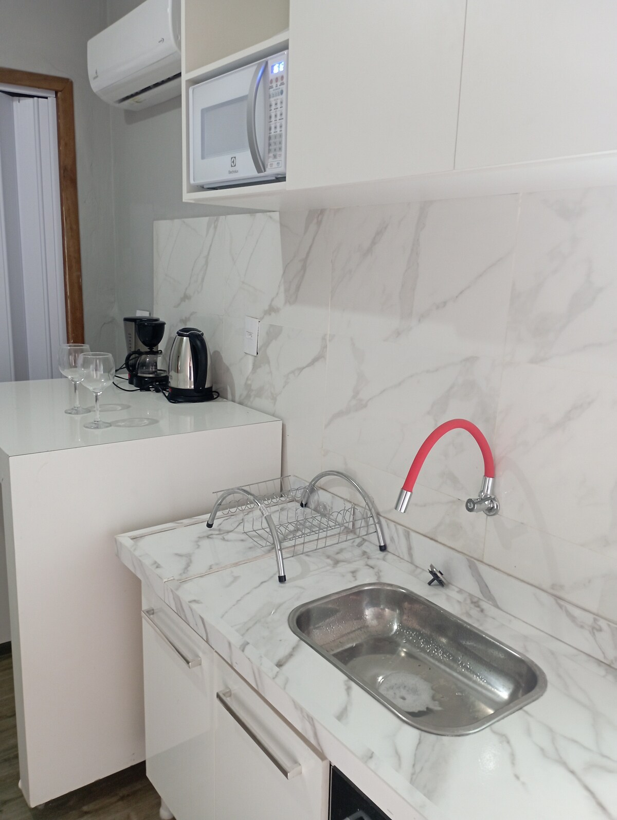 Abraza la sencillez en este lugar tranquilo y muy bien ubicado Alójese en un kitnet exclusivo, con todo lo que necesita: cocina completa, TV, aire acondicionado, internet y garaje con puerta electrónica. Ubicación privilegiada, a menos de 100 metros del Hospital Uopeccan, a 3 minutos de la estación de autobuses y a 5 minutos del centro comercial. Perfecto para quienes buscan comodidad, seguridad (cámaras y llave electrónica) y practicidad, con fácil acceso a mercados, farmacias, universidades y al lago municipal. ¡Reserva ahora!