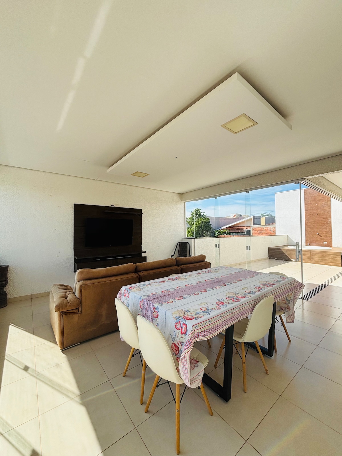 ¡Casa espaciosa y familiar! Ubicación privilegiada, a solo 100 metros de Shopping Palladium, cerca del centro de eventos, el parque de exposiciones y el hospital UOPECAN. 3 suites acogedoras, todas con aire acondicionado, lo que garantiza noches tranquilas. Habitación grande y cómoda para momentos de descanso. Cocina gourmet completa con barbacoa, encimera, freidora de aire y todos los utensilios esenciales. ¡Amplio césped, ideal para que los niños se diviertan y tu mascota juegue a gusto!