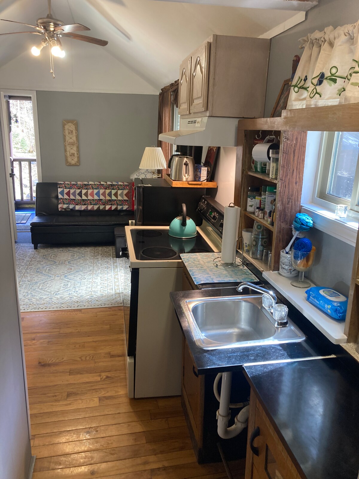 En silencio, escondido bajo un dosel de árboles en las montañas Apalaches, se encuentra uno de los secretos mejor guardados del este de Tennessee, hasta ahora. Ubicado sobre Sams Creek y Oberlin Falls, el Holyfield Hideaway se encuentra en un antiguo sendero indio y de búfalos, que más tarde se convirtió en el antiguo camino de carros que conectaba East Tn. con NC. La cabaña de 630 pies cuadrados está amueblada con cabecero de latón antiguo, cama tamaño king, sofá cama tamaño queen, mesa de comedor con 4 sillas, cocina y baño con ducha, conectando con una terraza de 800 pies cuadrados. Se admiten perros. Límite de 2.