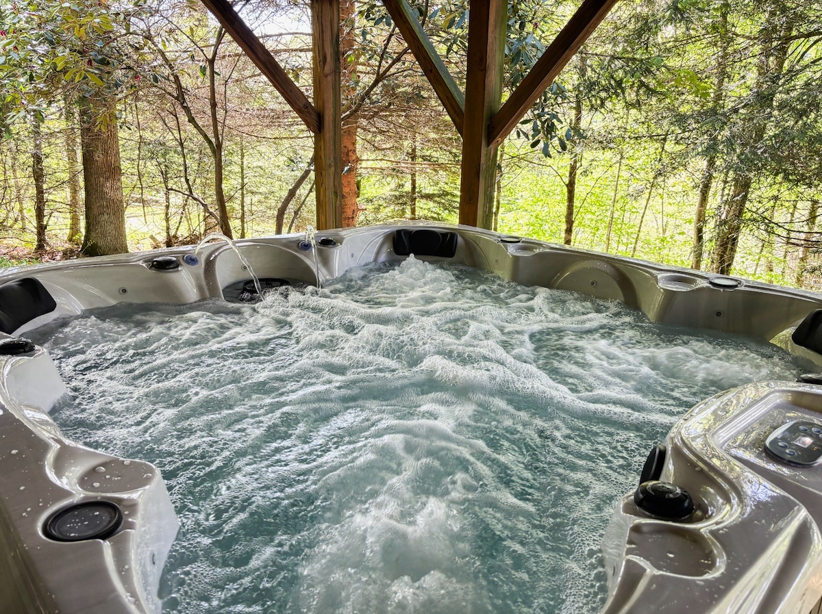 Spring Brook Mountain Retreat: jacuzzi y chimenea exterior