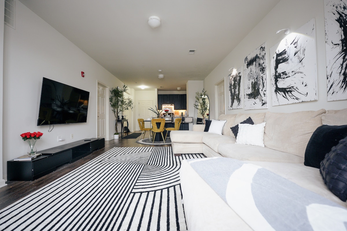 Este espacio es ideal para viajeros de negocios, familias que visitan el área de Nueva York o simplemente una escapada para ti y esa persona especial. A solo 8 minutos del aeropuerto de Newark, ofrece todas las comodidades de casa. Nuestro apartamento de un dormitorio cuenta con cocina completa y ducha a ras de suelo, con una cama tamaño queen y dos sofás para relajarse. ¡Deja que nuestro espacio sea tu alojamiento! ¡También damos la bienvenida a pequeños eventos como cenas y fiestas pequeñas, consulta las reglas de la casa o consulta a través del chat para conocer las tarifas!