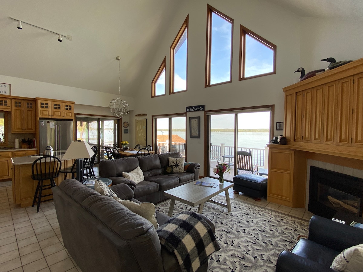 *El anfitrión ha cubierto el 100 % de las tarifas de Airbnb de los huéspedes en esta propiedad privada de 90 pies frente al lago* Cena en el porche mientras contemplas la puesta de sol. Asa nubes junto a la hoguera. Salta del muelle y nada en agua dulce o flota junto a los kayaks proporcionados. Haz un tour de vinos en barco. Camina por senderos y observa las cascadas en nuestros parques estatales locales. Alquila un barco en el puerto deportivo de al lado. Para parejas, familias, amigos y entusiastas del agua, ¡esto lo tiene todo!