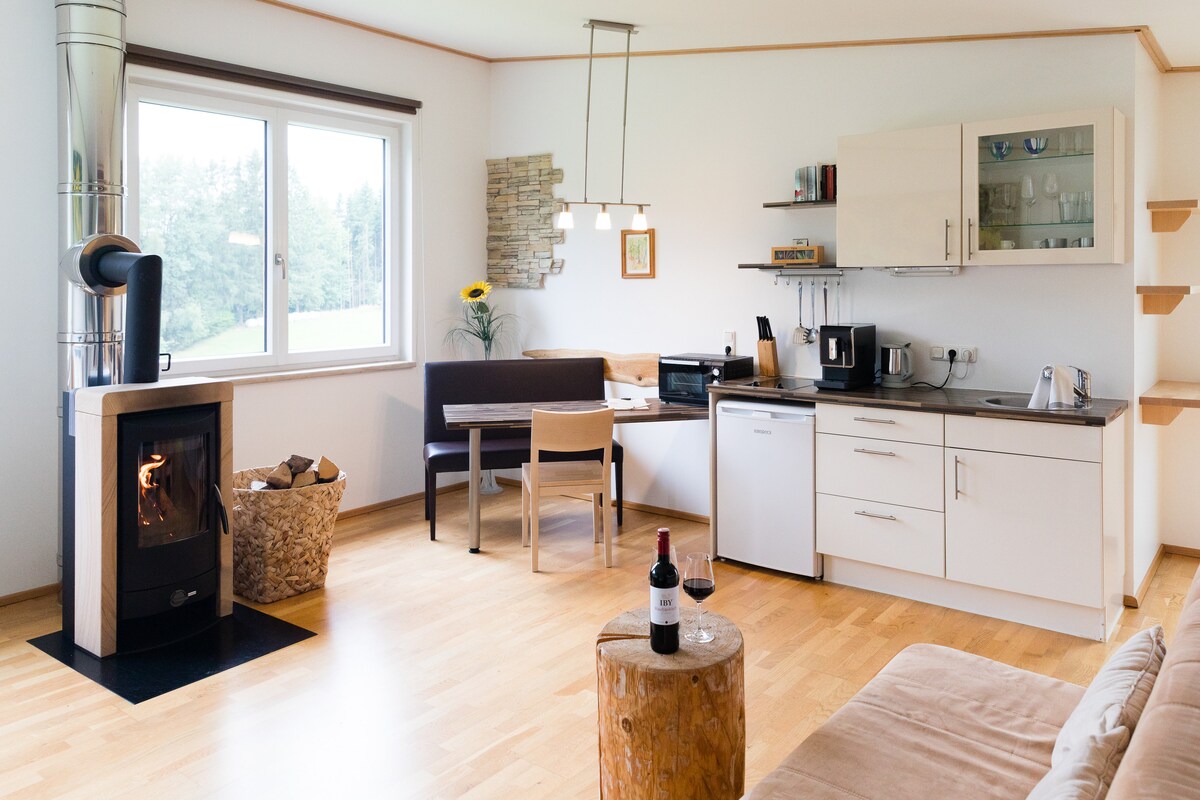 ¡Te damos la bienvenida a Rodlhaus GruBÄR! La estufa de leña en la sala de estar y el comedor proporciona un calor acogedor. La cocina muy bien equipada te invita a cocinar. Desde el balcón se puede mirar hacia la reserva natural y tener acceso directo al gran Rodl. En el último piso encontrarás acogedores espacios para dormir. Puedes relajarte en la sauna de barril en el jardín o en la hamaca con vistas. Cafe Machine: Tschibo Cafissimo Hay varios aceites de infusión de sauna disponibles. Nos vemos pronto :)