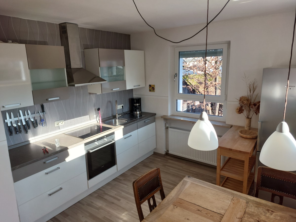 Bonito apartamento con estilo en el corazón de la Alta Franconia para hasta 6 personas. Disfrute de su estancia entre el bosque de Franconia y las montañas de Fichtel. Desde senderismo, ciclismo de montaña y esquí para unas vacaciones activas hasta cultura y compras en la cercana ciudad de Bayreuth, la cuna de Wagner. Todo es posible. Equipado con todo lo necesario para el día a día. También es posible alquilar por periodos más largos, no dude en ponerse en contacto con nosotros. ¡La familia Fuchs espera su mensaje!