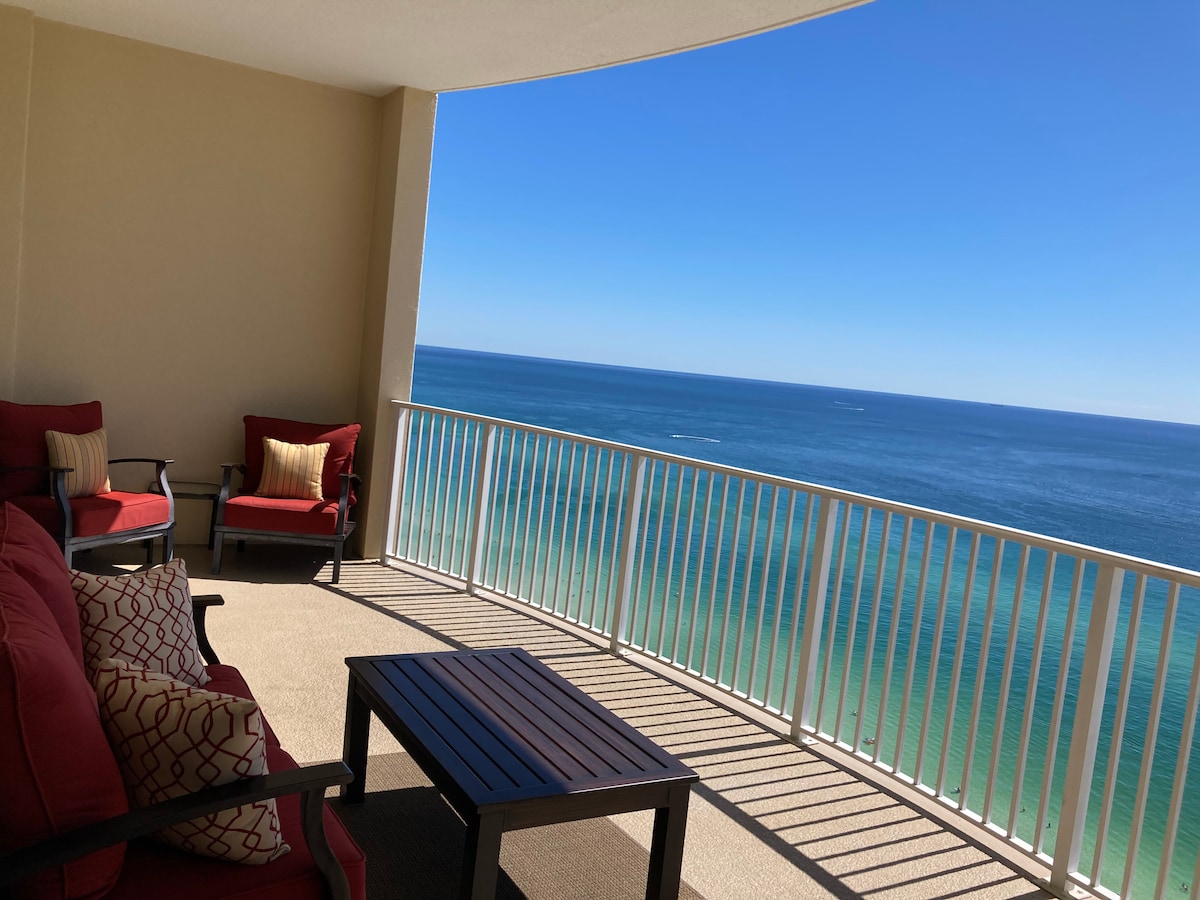 Bienvenido a tu balcón del quinto piso con vistas a ¡Las playas más bonitas del mundo! ¡Apartamento frente a la playa en Summit en Panama City Beach! * ¡RECIENTEMENTE RENOVADO Y DECORADO! ¡Decoración fresca, moderna y divertida! * El apartamento tiene capacidad para 5 personas con cama tamaño king en la suite principal, literas integradas y sofá de cuero/cama tamaño queen. 1 baño y medio. * Cocina totalmente equipada, con todo lo necesario para cocinar y servir comidas. * Lavadora y secadora en el apartamento. * Ropa de cama/toallas de baño y artículos de aseo. * Televisor inteligente de alta definición, wifi gratuito en la sala de estar y el dormitorio.