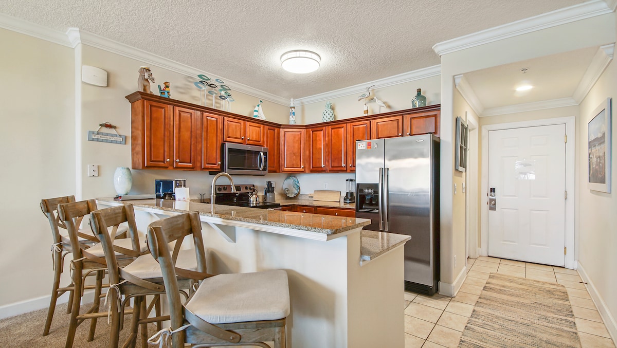 ¡Nuestro condominio está ubicado justo en las playas más hermosas de los Estados Unidos! También está a poca distancia de la mayoría de las atracciones, tiendas y restaurantes. Nuestro alojamiento directamente frente al mar es de 1BD/1.5BA. El condominio incluye una cama tamaño king, literas dobles y un sofá cama tamaño queen. El departamento tiene una cocina totalmente equipada, lavadora, secadora, plancha, tabla de planchar y más. Tenemos 2 televisores grandes de pantalla plana y wifi gratuito. ¡Balcón frente al mar! ¡Sillas de playa gratis! ¡Piscina climatizada, bañera de hidromasaje, spa, saunas!