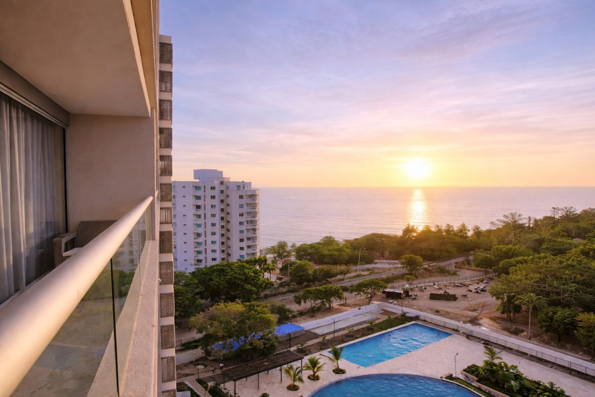 Vista, comodidad, elegancia y ubicación perfecta en Santa Marta en el Caribe colombiano🌞🏖️ Este hermoso apto NUEVO para estrenar te espera en una de las zonas más exclusivas y tranquilas de Santa Marta. Ideal para quienes buscan calidad de vida, sofisticación y acceso directo a la playa. A solo 5 minutos del aeropuerto. Con balcón que tiene la mejor vista hacia el mar que te puedas imaginar! Restaurante, jacuzzis, piscinas, etc. Cobro de manilla $29.200 por persona.