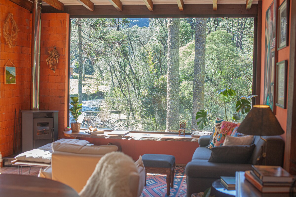 Situada a 15 km del centro de Urubici, esta cabaña está en medio de la naturaleza con vistas al río Cachimbo. Tenemos un espacio exclusivo con una hoguera cerca del río y una amplia terraza para disfrutar de la belleza natural del lugar. La cabaña es un espacio de refugio que puede alojar hasta dos parejas, una de las habitaciones es privada y la otra está en el entrepiso, en un espacio abierto. Al ser una zona rural, no hay red telefónica, solo acceso a internet de fibra.