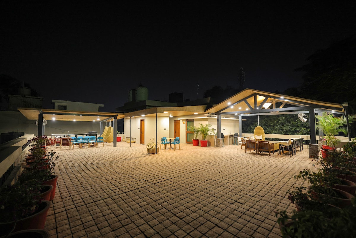 Disfrute de una estancia de primera categoría en Serenity Stay, con habitaciones con aire acondicionado y un balcón privado de hermoso diseño con vistas a las apacibles montañas. Relájate en asientos con estilo bajo un elegante arco, perfectos para el té de la mañana o para disfrutar del atardecer. Las habitaciones están decoradas con esmero para ofrecer comodidad y un ambiente refinado.Ideal para familias y grupos que buscan tranquilidad con un toque de lujo.Se puede pedir comida recién preparada para disfrutar de una estadía completa y sin complicaciones.
