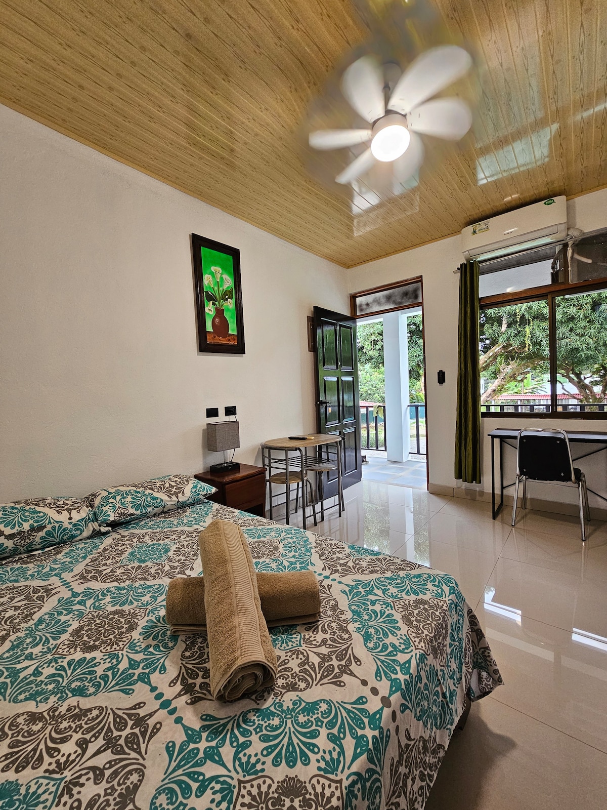 Características clave del Hotel Por Que No?: 🌟 A 10 minutos a pie del Parque Nacional Marino Ballena (Whale Tail Beach) 🌟 Habitación privada y baño 🌟 Cama tamaño queen 🌟 Piscina con tumbonas (compartidas) 🌟 Cocina al aire libre totalmente abastecida (compartida) 🌟 Aire acondicionado 🌟 Estacionamiento gratuito en las instalaciones Internet 🌟 rápido. 🌟 Lavadora + Secadora (pequeña tarifa)