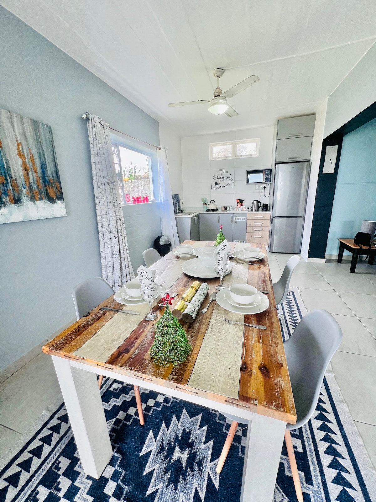 Esta hermosa cabaña de 1 dormitorio para 4 personas es ideal para 2 adultos y 2 niños con su cama tamaño queen y literas. Cuenta con cocina propia espaciosa, comedor y salón. Copias de seguridad UPS para el WiFi y la TV. Hay un braai en el patio con piscina compartida y jardín en esta propiedad. Estacionamiento gratuito ~ 1 auto. A poca distancia de The Waffle House y Ramsgate Beach, con escalones de piedra al final de la carretera.
