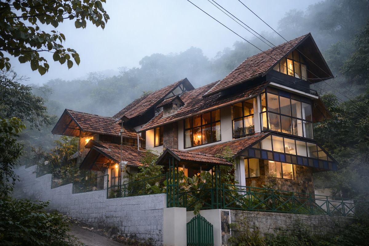 Una cabaña de piedra restaurada a 3,300 pies en Vagamon, Kerala. Retiro ecológico autosuficiente en cinco acres de bosque: energía solar y eólica, comidas de la granja a la mesa preparadas por el chef Anoop, sin televisión y en absoluta tranquilidad. La casa de campo fue en su día un cobertizo de trabajo en una finca en explotación. Paredes de piedra originales, interiores cómodos y una galería con vistas al valle. No es un complejo. No hay piscina ni spa. Lo que hay: el canto del cálao al amanecer, fogatas bajo la Vía Láctea y la sensación de estar completamente fuera del mapa.