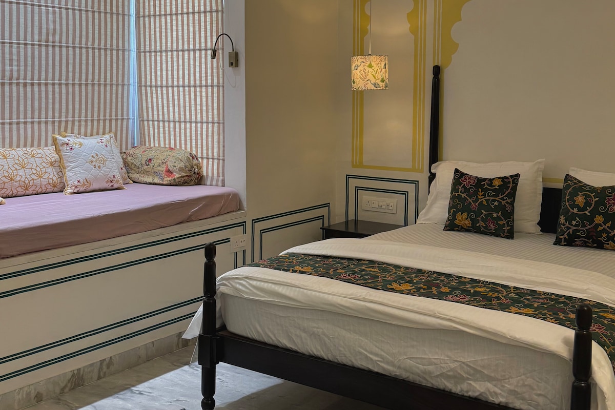 Cada rincón de este espacio ha sido cuidadosamente seleccionado, combinando el rico estilo de la rica herencia de Rajastán con los mejores elementos que se encuentran en los hoteles de lujo. Desde sábanas de felpa e iluminación ambiental hasta decoración artesanal y comodidades bien planificadas, este alojamiento está diseñado para que te sientas mimado, tranquilo e inspirado. Ya sea que estés aquí para una escapada romántica, un refugio tranquilo o una base para explorar Jaipur, Samriddhi ofrece una estancia que se siente a la vez real y refrescantemente personal.