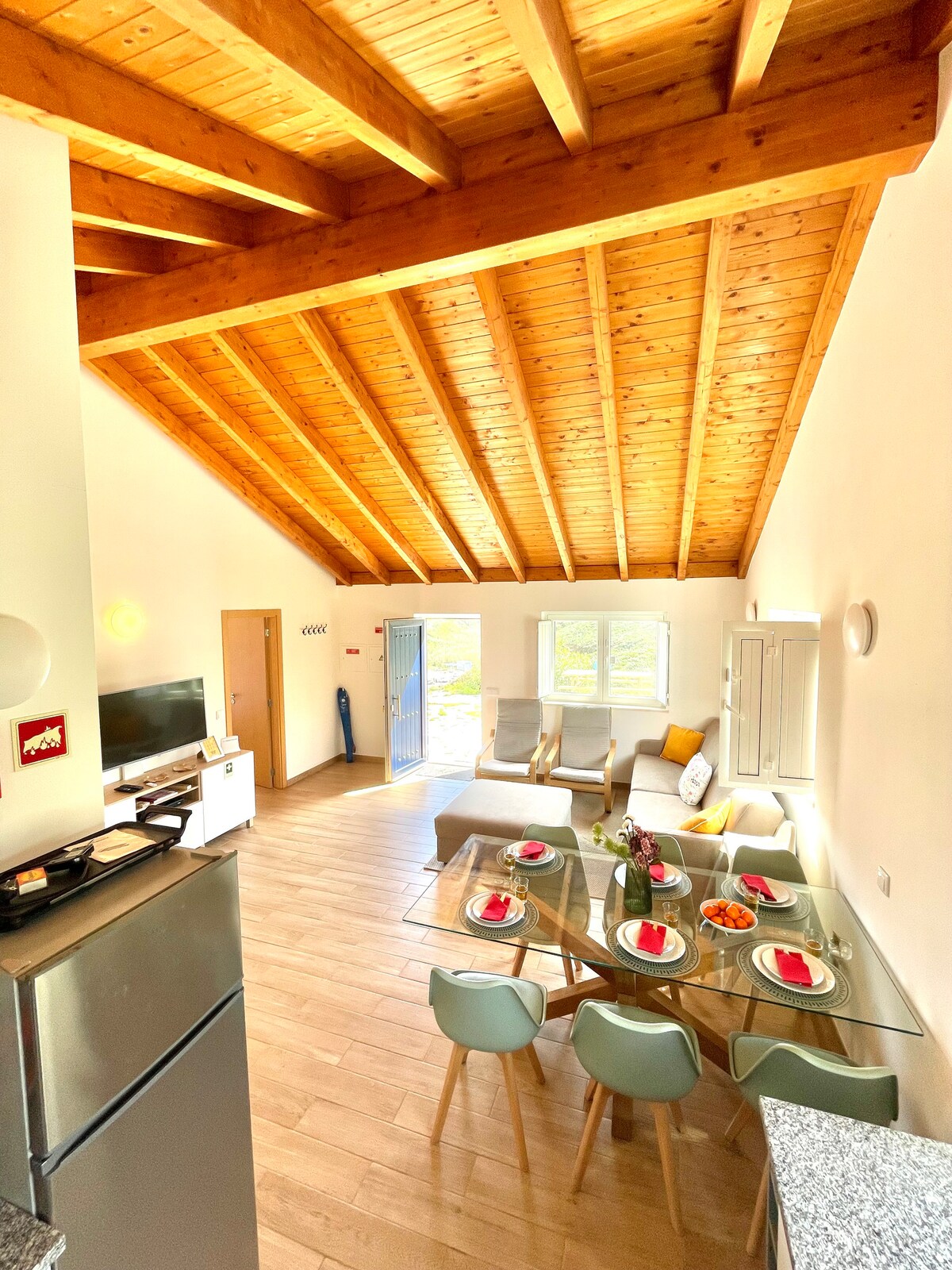 Respira profundamente en Ahua Portugal. La casa está ubicada en medio de la ladera con vistas espectaculares sobre el valle del Seixe y a solo 5 km de la playa de Odeceixe. La casa es de nueva construcción y cuenta con todas las comodidades, incluyendo: calefacción por suelo radiante, internet de fibra de alta velocidad, cómodos colchones de muelles y amplios patios al aire libre. En la propiedad de 180 000 m2 tendrás total privacidad con acceso al río Seixe y hermosos paseos mientras contemplas la Serra de Monchique.