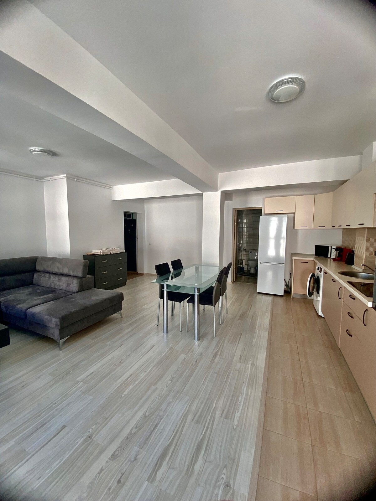 Este elegante alojamiento es perfecto para estancias de 1 a 4 personas; tiene 2 camas dobles. El apartamento es muy limpio,espacioso, cómodo,moderno,elegante, bien cuidado,en una cuadra nueva,en el primer piso,con balcón, totalmente equipado con equipos nuevos,incluido aire acondicionado, en una zona tranquila de Sibiu,desde donde se puede llegar en 7 minutos en el centro de la ciudad. Tenemos estacionamiento privado,seguro, en la propiedad y casi medios de transporte público, directamente al centro de la ciudad. ¡Te sentirás como en casa!