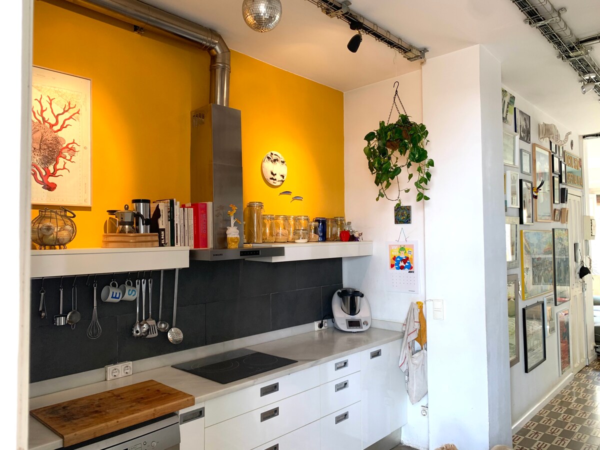 Si buscas una estancia diferente en el barrio más bohemio de Valencia este es tu sitio. El apartamento se ha pensado como un lugar donde relajarse en medio de la ciudad y viene totalmente equipado para ello. El espacio tipo loft y es perfecto para familias, parejas o grupos con ganas de disfrutar de Valencia. Se encuentra a escasos minutos andando de la ciudad de las artes y las ciencias y del barrio del Carmen, y a menos de dos minutos se puede coger un autobús que te deja directo en la playa.