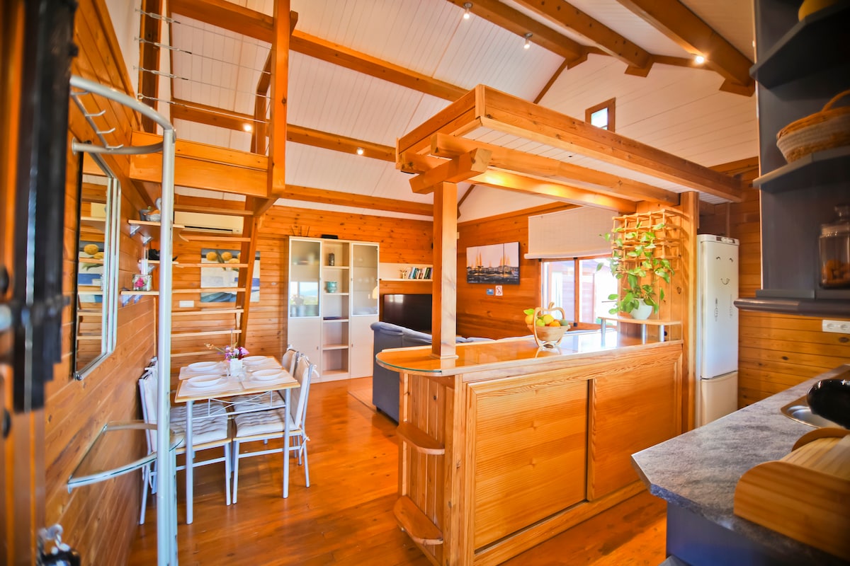 Acogedora casa de madera a 1Km. de la playa, situada en Almayate (Torre del mar) Málaga, Andalucía. Esta casa rural se compone de buhardilla, cocina abierta con barra americana que da al salón comedor. Dormitorio principal y baño. En el exterior hay un acogedor porche cubierto, piscina con jardín y y zona barbacoa. Desde la zona de la barbacoa y el exterior del porche se divisa el mar. Todo totalmente preparado y acondicionado para el descanso, tranquilidad y disfrute de los huéspedes
