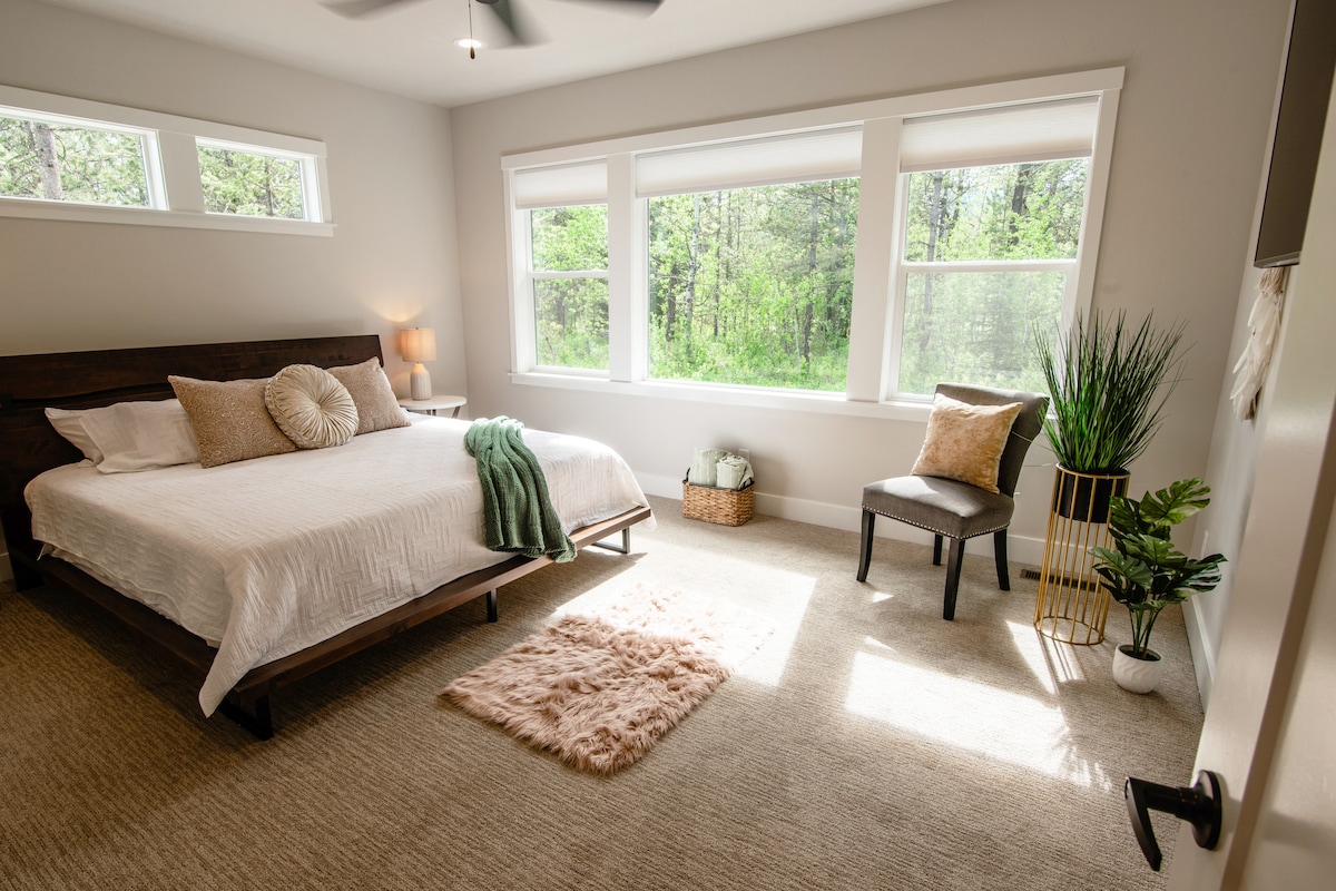 ¡Escapa de la ciudad y relájate en Lazy Bear Bungalow! Un refugio recién construido y mejorado, ubicado entre las montañas y el lago Cascade. A solo dos millas del embarcadero y la playa de Boulder Creek, a 15 minutos del centro vacacional Tamarack y a unos 15 millas de McCall. Diviértete con toda la familia o pasa un fin de semana en pareja en este hermoso alojamiento. ¡Trae tus palos de golf y juguetes! Asa malvaviscos en la hoguera, disfruta de la vista de Tamarack desde el jacuzzi, juega a la bochas o al cornhole en nuestro 1/2 acre.