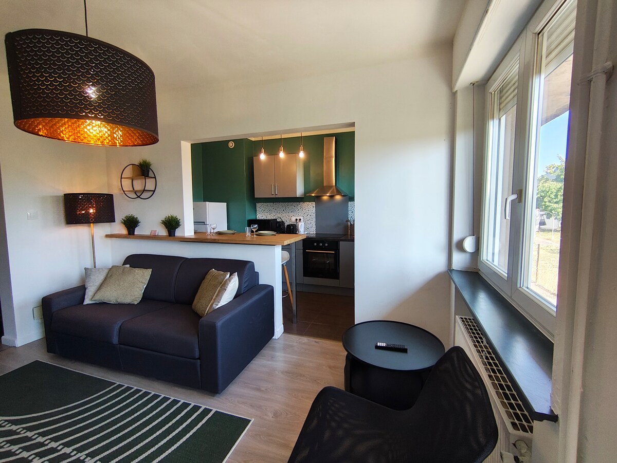 ✨ Acogedor estudio de 22 m² con balcón y vistas a la naturaleza – ideal para una estadía relajante Regálese un paréntesis de calma en este encantador monoambiente totalmente reformado, con una decoración agradable y moderna. Perfecto para una estadía en pareja, una escapada de bienestar o un viaje de negocios. 💧 Ubicación ideal • A 150 metros del balneario • A pocos minutos a pie de todas las actividades turísticas: zoológico, Galaxie, casino, Villa Pompéi, Snowhall • Estacionamiento libre y gratuito