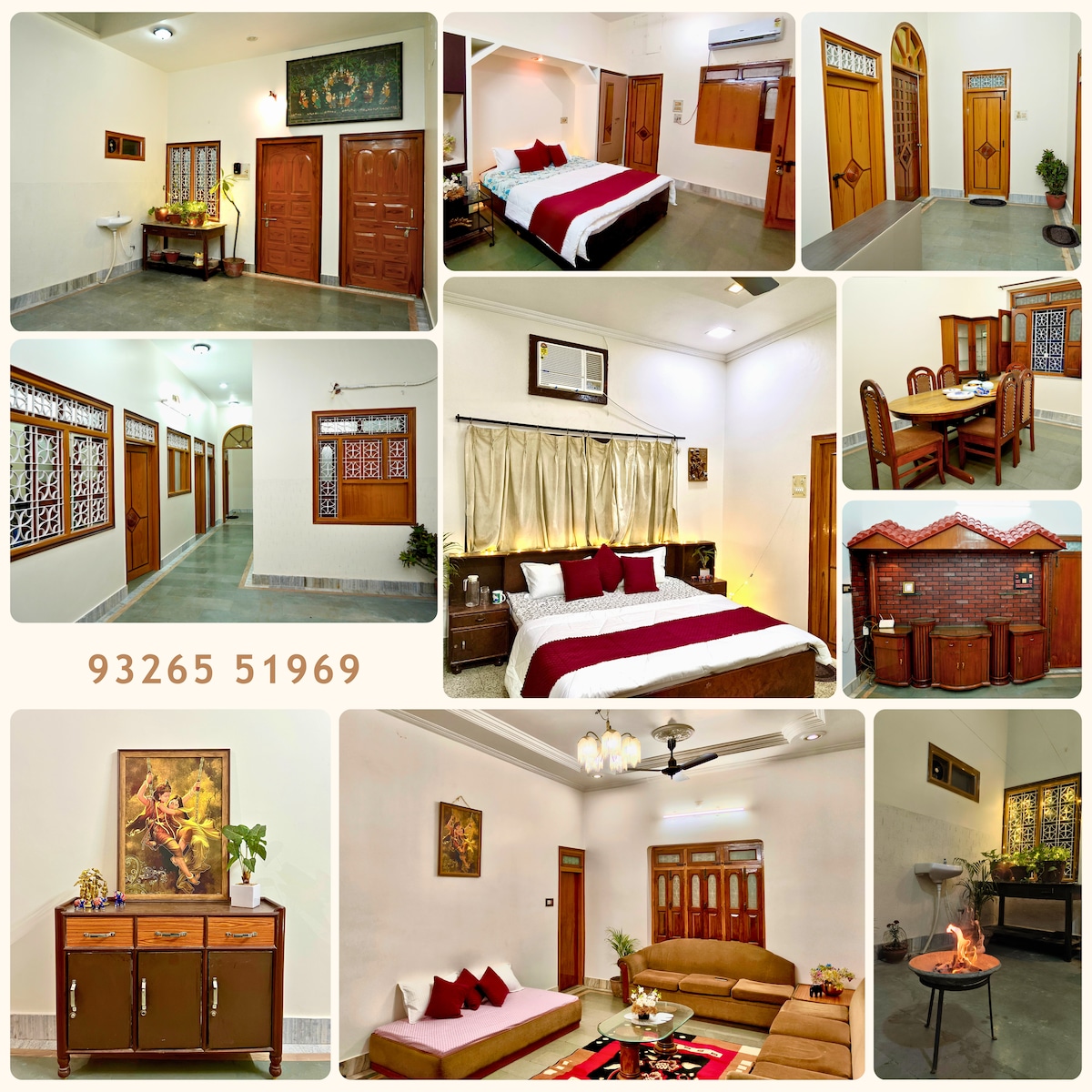 Este espacioso y tranquilo Airbnb ofrece todo el primer piso con habitaciones con aire acondicionado y cocina totalmente equipada. Lujosamente amueblado, ofrece un refugio cómodo cerca de todos los templos y lugares de interés turístico importantes. Perfecto para viajeros que buscan comodidad, confort y fácil acceso a lugares de interés cultural en un entorno sereno. No se permite el consumo de alcohol ni de alimentos no vegetarianos. Somos fabricantes de saris de seda Banarasi y ofrecemos precios de venta al por mayor a nuestros huéspedes si deseas echar un vistazo.